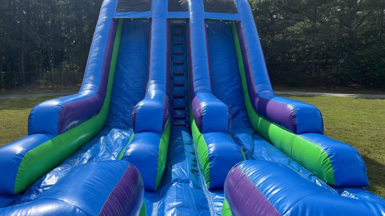 Experience double the excitement with the 20 Ft Dual Lane Slide! Standing tall, this inflatable marvel features two slippery lanes for epic side-by-side races with friends or family.